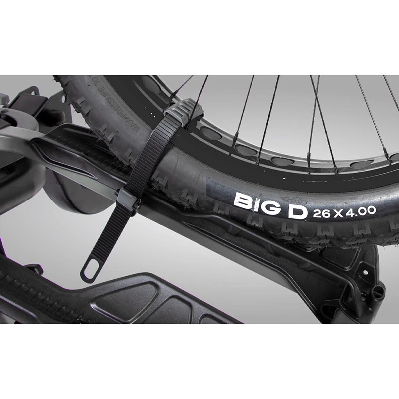 – Les longues sangles de roue rembourrées en caoutchouc retiennent les pneus jusqu’à 4 ”de large; tirez dessus pour serrer, et utilisez la libération rapide pour desserrer